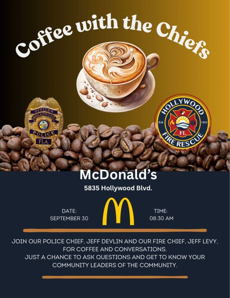 September 27, 2025 Coffee With the Chiefs McDonald's Tuesday, September 30, 20258:30 am - 10:00 am 5835 Hollywood Blvd Hollywood