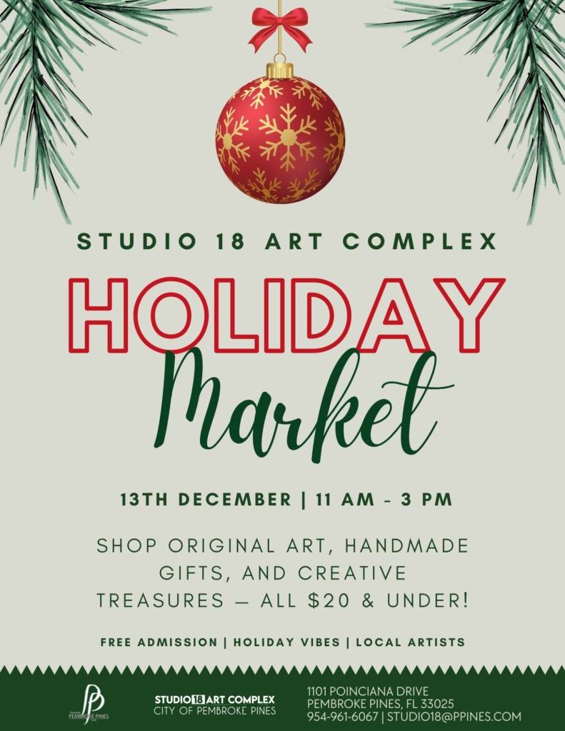 Explore paintings, ceramics, jewelry, prints, ornaments, and more — all created by the talented Studio 18 artist community. Enjoy the festive atmosphere, meet the makers, and shop local this holiday season!