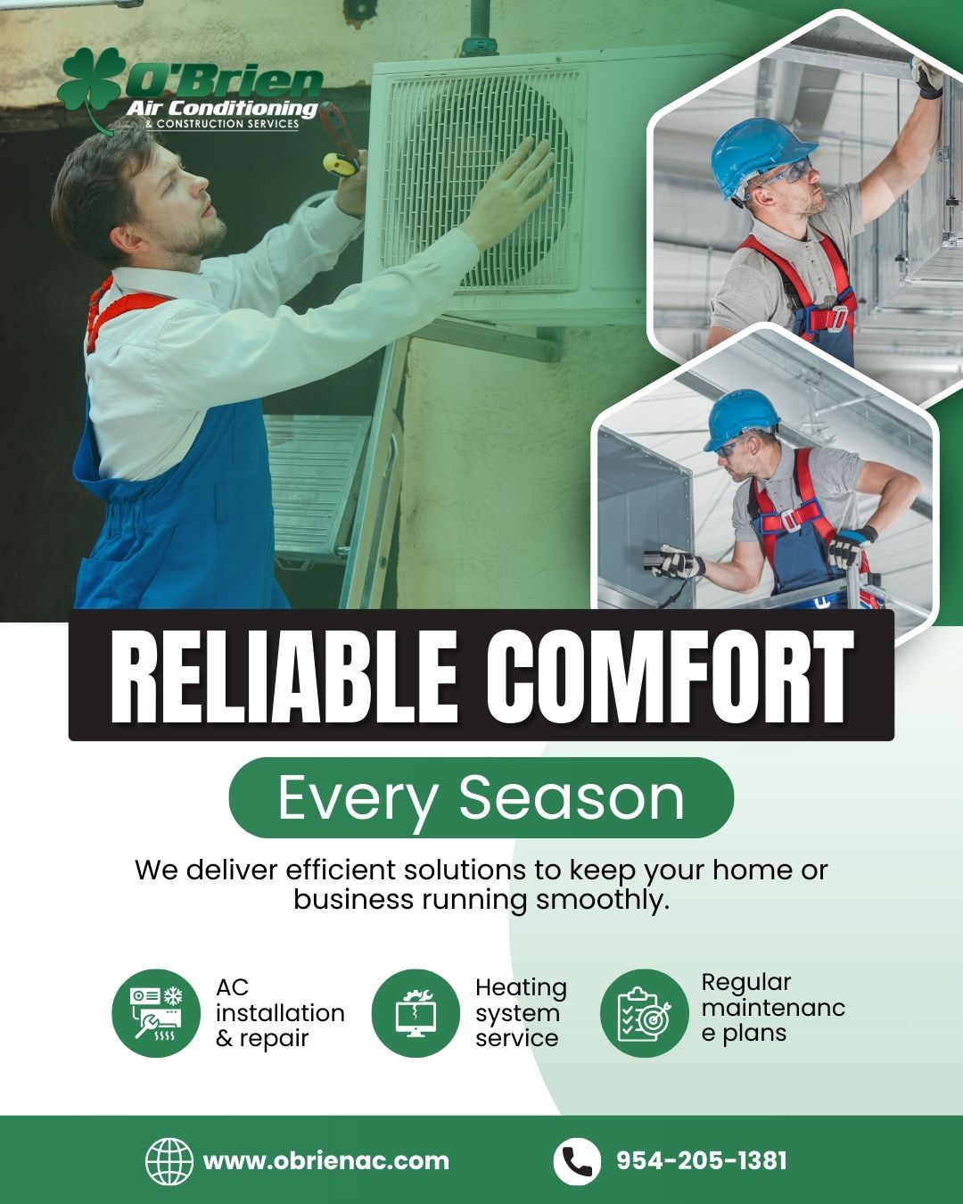O’Brien Air Conditioning provides professional A/C installation, repair, and maintenance services throughout South Florida. With over 20 years of industry experience, their licensed technicians handle everything from systems that won’t cool or turn on to airflow issues, leaks, frozen units, thermostat problems, and rising energy bills. Known for expedient and reliable service, O’Brien A/C offers transparent, upfront pricing and clear recommendations so customers can make confident decisions about their home comfort.