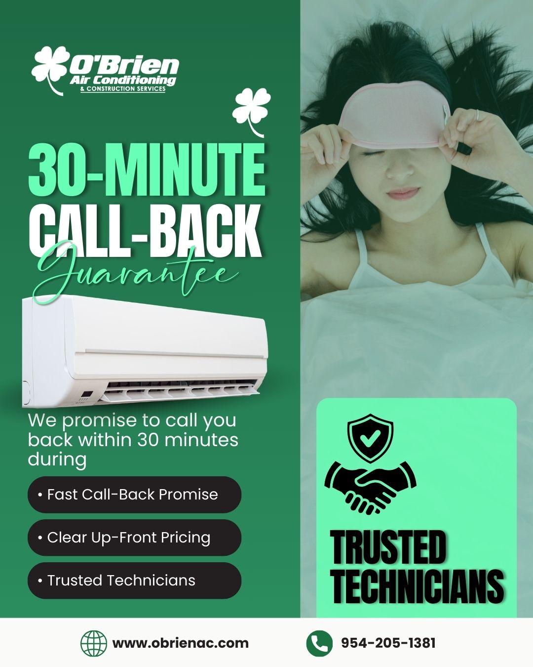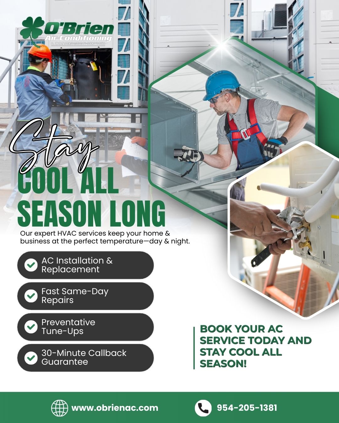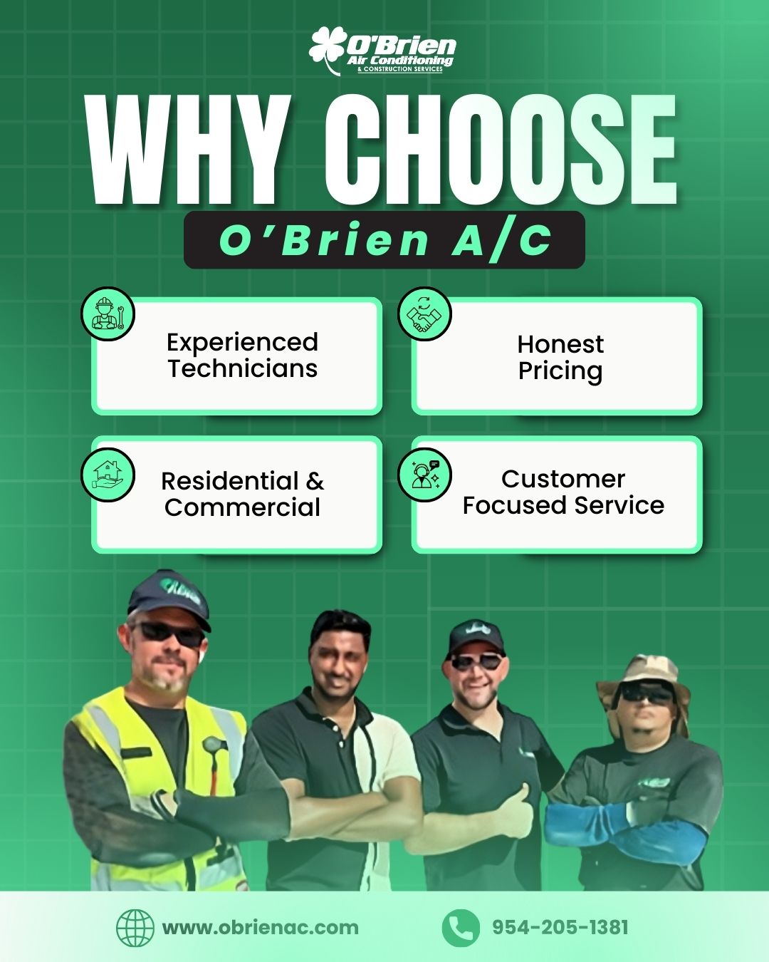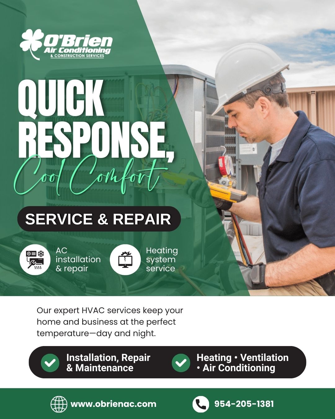 Based in Fort Lauderdale, O’Brien Air Conditioning proudly serves residential customers across Broward, Palm Beach, and surrounding areas. They stand out with a 30-minute callback guarantee during business hours and a comprehensive Five-Point Tune Up that checks drainage, mechanical components, airflow, electrical systems, and refrigerant levels. Whether it’s an urgent repair or routine maintenance, O’Brien A/C is committed to keeping South Florida homes cool, efficient, and comfortable year-round.